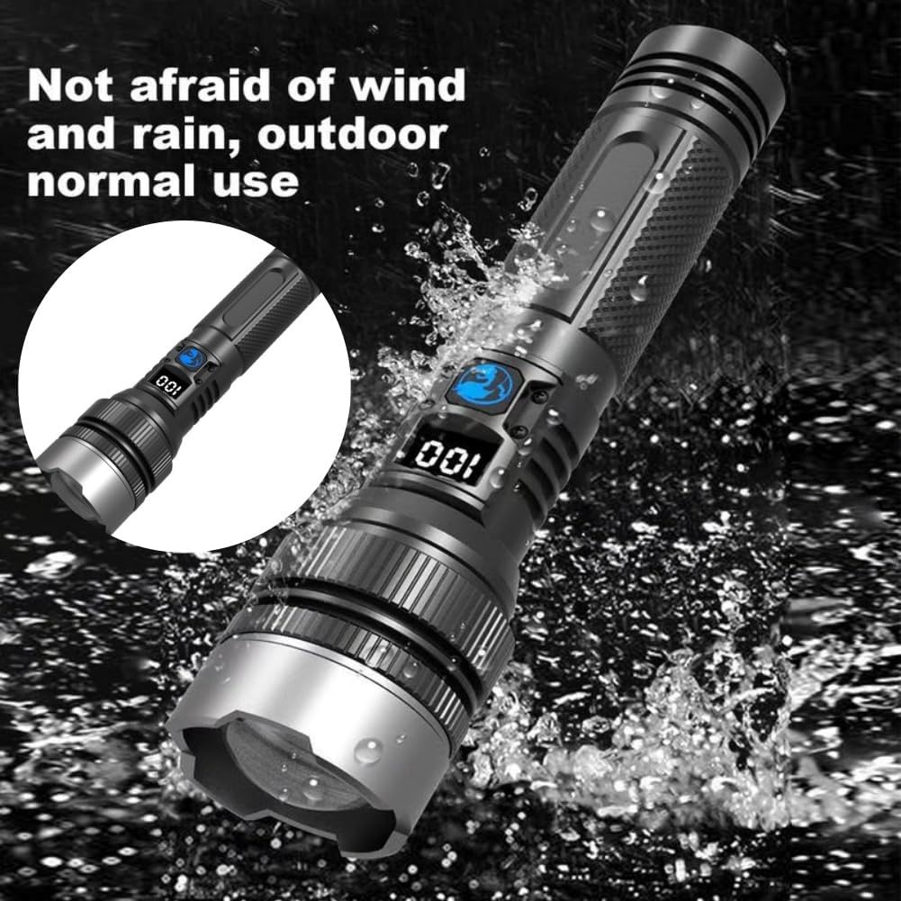 BIGGEST & BRIGHTEST - Our LED Flashlight is the biggest and brightest Flashlight on the market. With a solid build and blinding brightness, the delivers up to 15000 real lumens. This flashlight is big on power but still compact enough to fit in your backpack, survival bag, or car glove compartment.