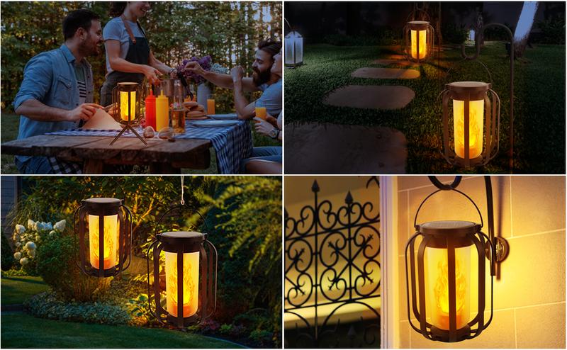 【WIDE APPLICATIONS, IDEAL GIFT】Outdoor waterproof hanging solar lights can be hung on porch, tree, pergola, branches with a hanging loop, or placed on a desktop or windowsill. Add a warm and pleasant atmosphere to your yard. The flame flickering effect of the hanging solar light makes your home environment more lively and vivid, also ideal gift for ladies, loved ones, mother's day, housewarming and gardening.