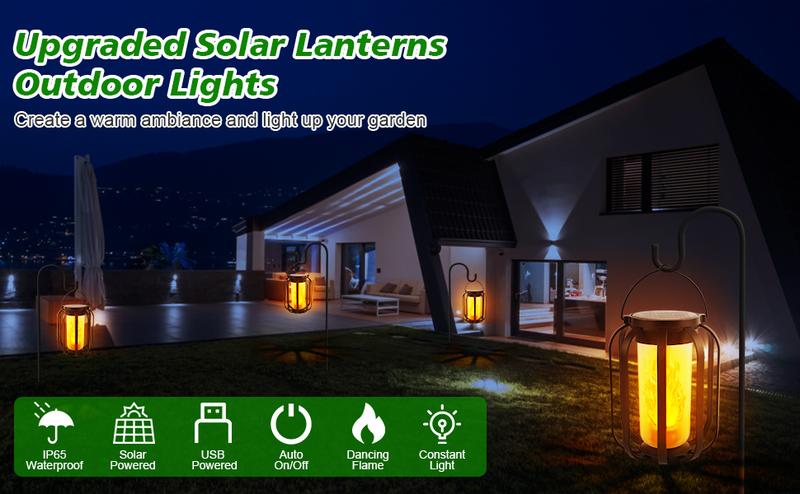 【All Weather, Rugged and Durable】The outdoor waterproof performance of the solar lantern can withstand bad weather, no more worry about rain, snow, frost or sleet, perfect for outdoor use. Compared with other outdoor solar lights, our outdoor lanterns are made of high-strength ABS material with sturdy construction, which ensures the long-lasting performance of these hanging solar lanterns.